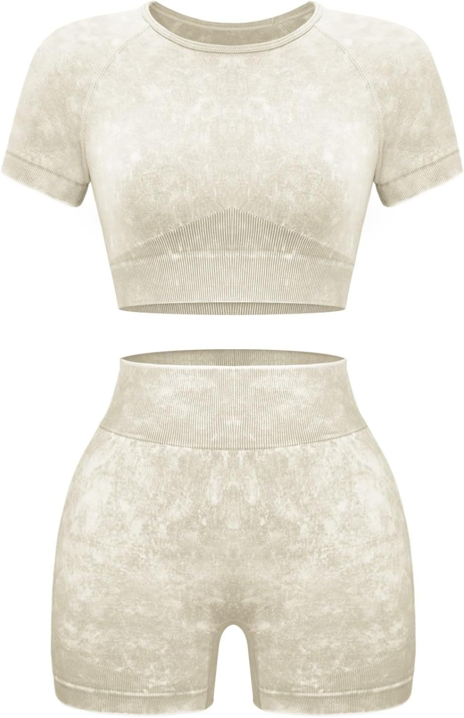 Women’s Workout Sets 2 Piece – Seamless Acid Wash Yoga Outfits Shorts and Crop Top Matching Gym Athletic Clothing Set